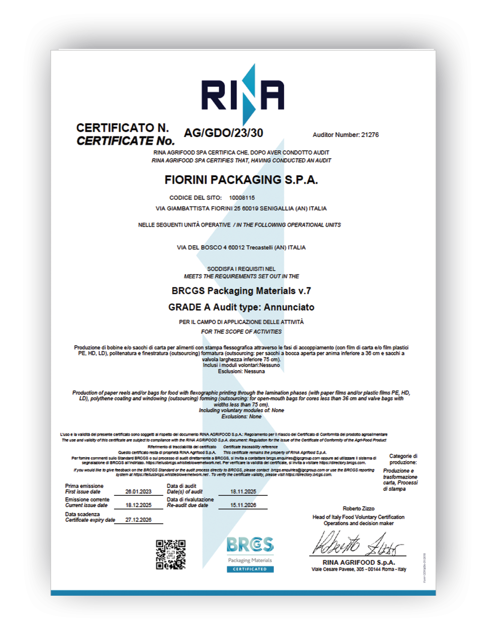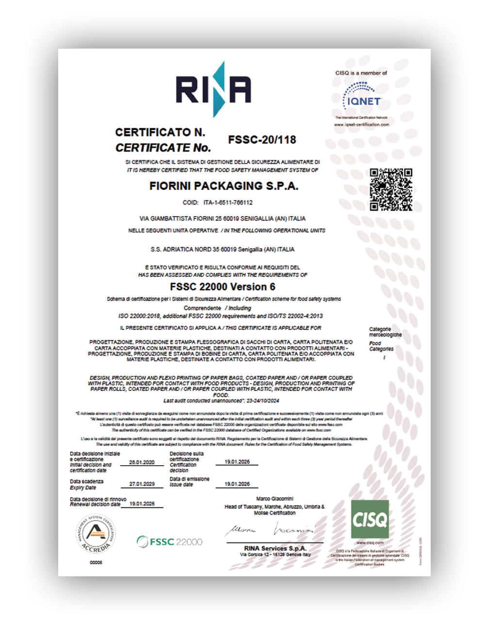 This certification gives customers the confidence that they are purchasing hygienically safe packaging, that they are partnering with a packaging manufacturer who can meet the needs of the food market, and with whom they can collaborate effectively throughout the supply chain through clear and limpid communication related to food safety.