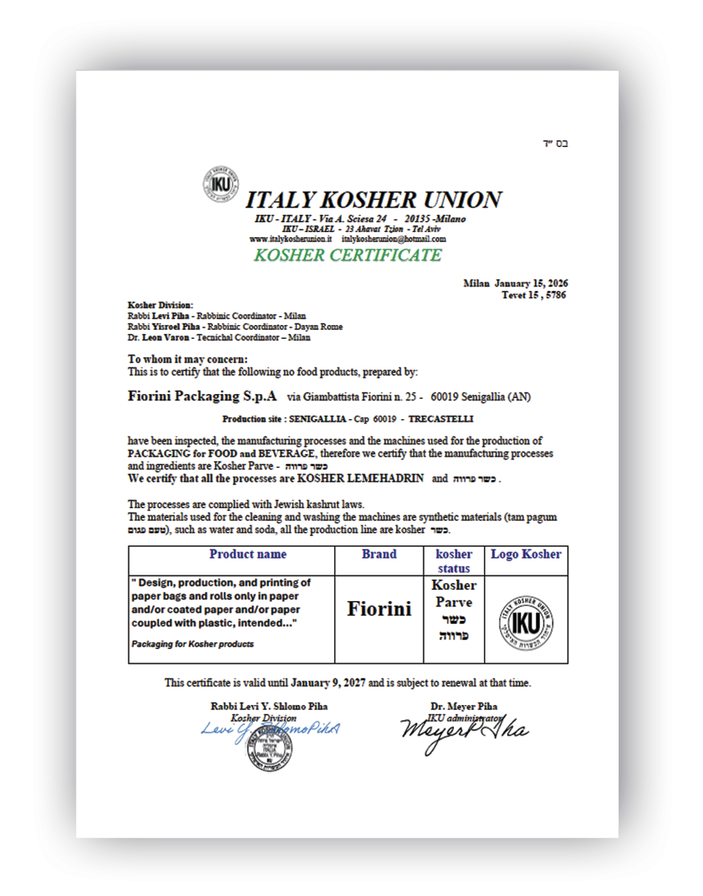 This certification is not only aimed at observant consumers of the Jewish faith, but also at all those who identify this label as a guarantee of purity, quality and control of ingredients.